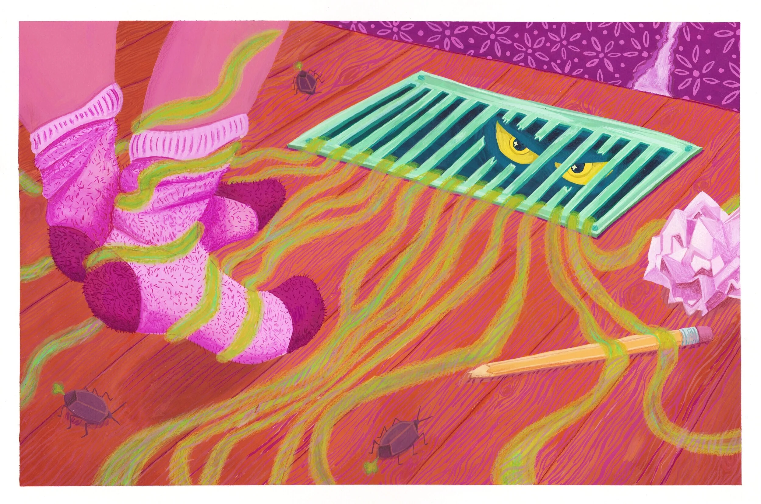 gouache and colored pencil.